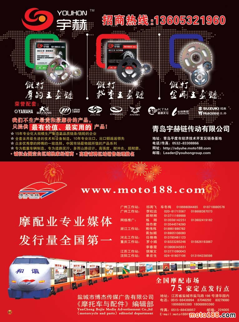 目前,我們的網站注冊的會員已達到1100多家,在11月廣州全摩會結束以后,我們的工作重心將全部轉移到《大全》的第十一次升級上。用網站這個立體性的平臺全心全意地為企業服務,整理數據庫,核對基本資料,制作企業網站,工作量相當巨大的。因此,我們希望得到企業的支持與配合,為我們提供準確、詳細的基本信息,以確保本書百分之百正確。我們的目標是:每一家企業都能將我們的網站作為信息傳播的工具,將網站覆蓋到所有行業;我們要達到的效果是:希望每一家企業的資料都能在我們的網站航母上得到體現,能讓企業得到更切實可觀的利益。對于這本三年才升級一次的書,不僅內容和形式會有一個革命性的變化,信息擴散和傳播也會有革命性的變化,而我們更是會為企業提供飛躍性的服務。我們有信心,也一定會用心、盡力去做好這項工作,努力打造摩托車行業的信息航母。