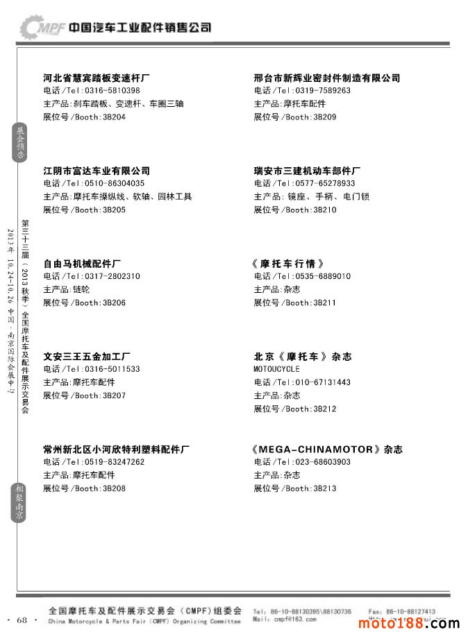 第33屆春季(濟南)全國摩托車及配件展示交易會參展企業名錄