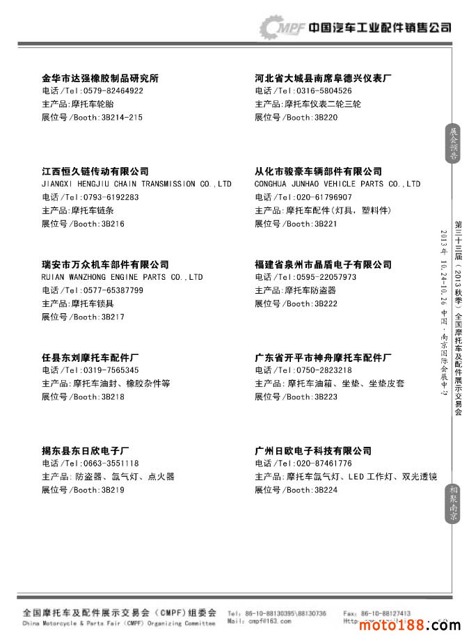 第33屆春季(濟南)全國摩托車及配件展示交易會參展企業名錄