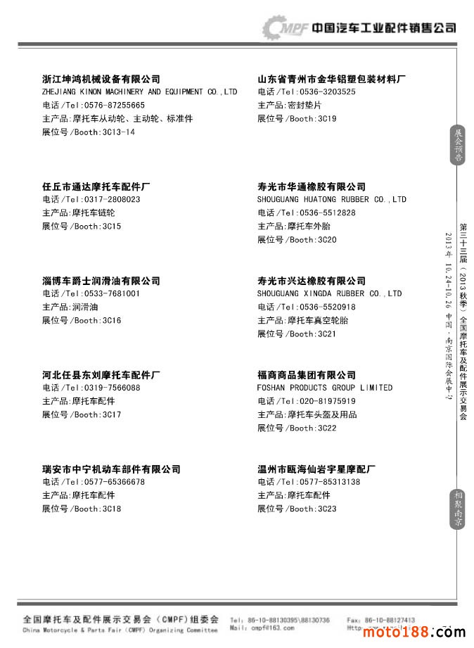 第33屆春季(濟南)全國摩托車及配件展示交易會參展企業名錄