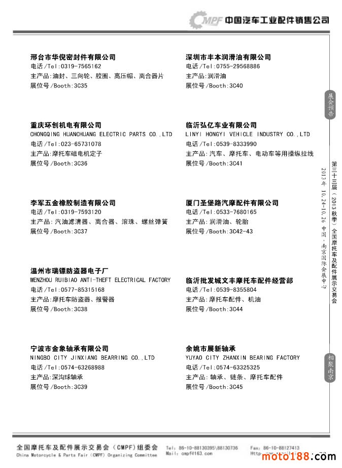 第33屆春季(濟南)全國摩托車及配件展示交易會參展企業名錄