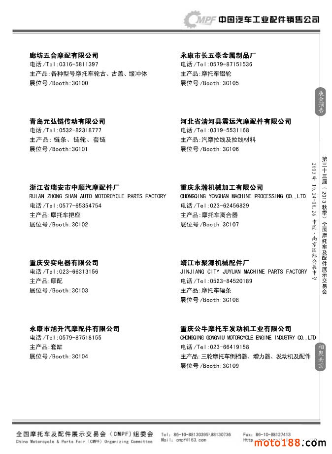 第33屆春季(濟南)全國摩托車及配件展示交易會參展企業名錄