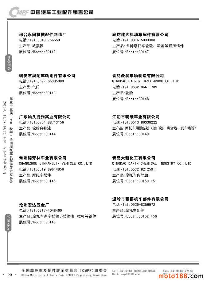 第33屆春季(濟南)全國摩托車及配件展示交易會參展企業名錄