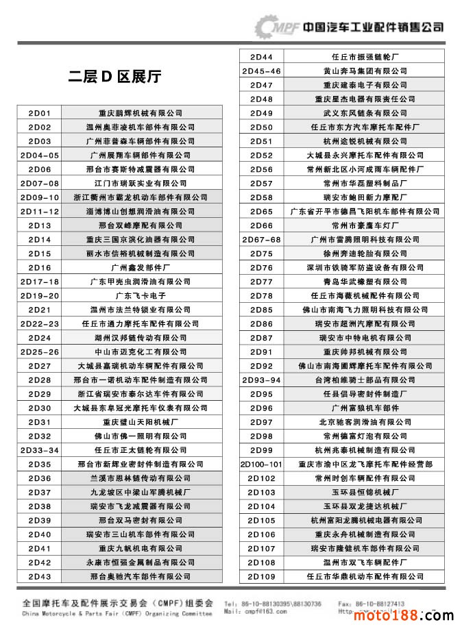 第33屆春季(濟南)全國摩托車及配件展示交易會參展單位名錄