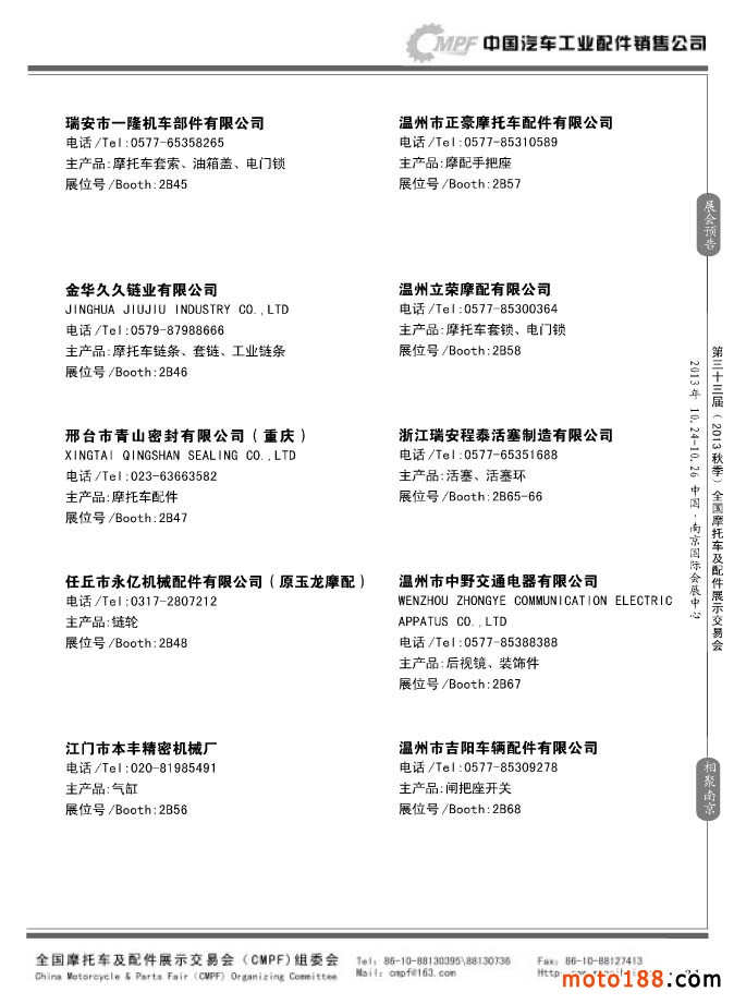 第33屆春季(濟南)全國摩托車及配件展示交易會參展企業名錄