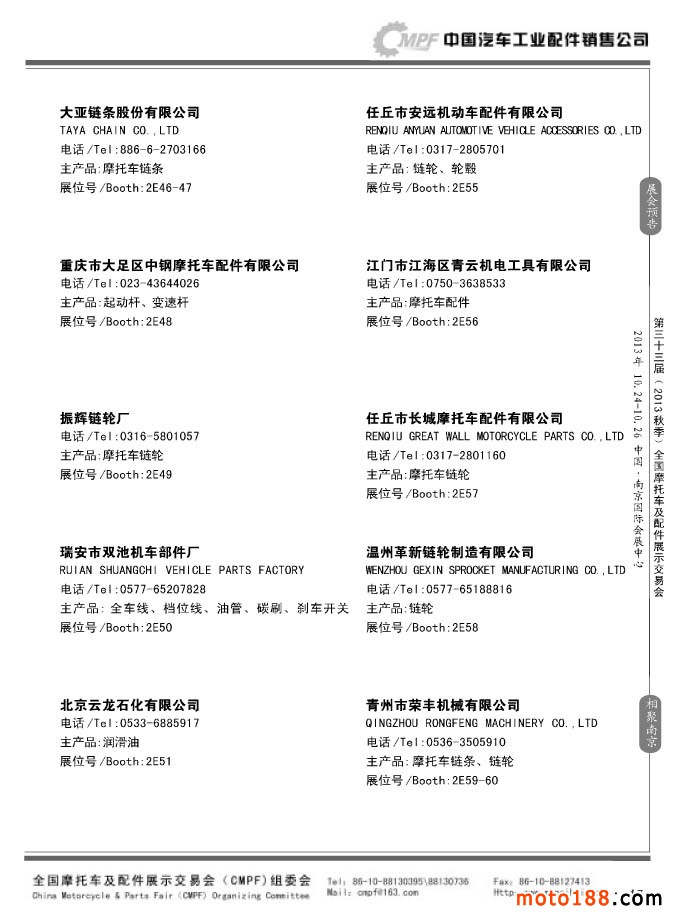 第33屆春季(濟(jì)南)全國(guó)摩托車(chē)及配件展示交易會(huì)參展企業(yè)名錄