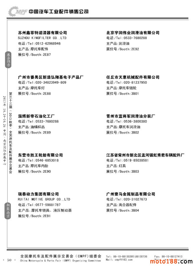 第33屆春季(濟南)全國摩托車及配件展示交易會參展企業名錄