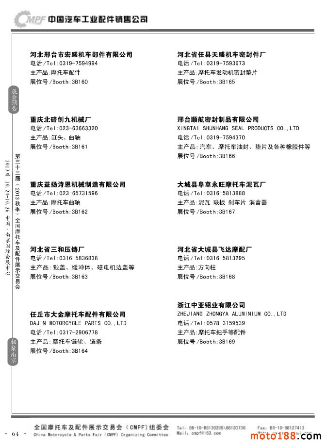 第33屆春季(濟南)全國摩托車及配件展示交易會參展企業名錄
