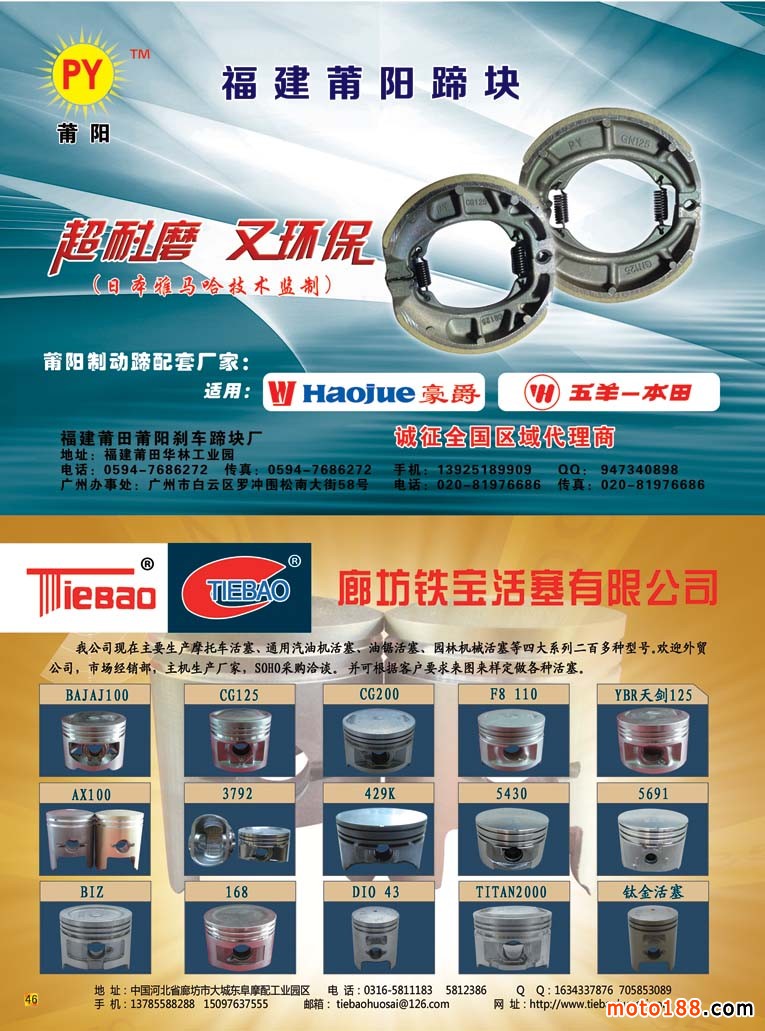 后彩46 福建莆田莆陽剎車蹄塊廠+后彩廊坊鐵寶活塞有限公司