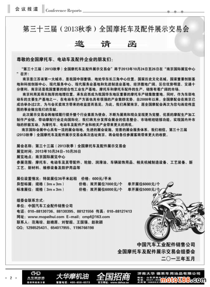 目前行業(yè)只有我們是碩果僅存的媒體,全國有七十幾個大大小小的集散市場,和分散在各地市、縣、鎮(zhèn)的幾萬家經(jīng)營散戶。姑且不算國外市場,就國內(nèi)摩配行業(yè)而言也算是。經(jīng)過這么多年的調(diào)整,都先后轉(zhuǎn)向了,如果一年出十二期雜志,對于整個摩配行業(yè)來說確實是不夠的:周期長、時效性慢,不符合未來市場的需要。當(dāng)然,這需要一個適應(yīng)的過程,我們現(xiàn)在決定冬夏季各縮一期,讓節(jié)奏適應(yīng)市場。這兩年來我們雜志每年都有一些調(diào)整,來適應(yīng)市場的變化。不變是相對的,變是永恒的,尤其像《摩托車與配件》在上升和發(fā)展時期,更是在探索中前進,在前進中發(fā)展。那些倒下的媒體就是因為缺少創(chuàng)新探索精神,墨守成規(guī),與社會發(fā)展趨勢漸行漸遠而被時代所淘汰。