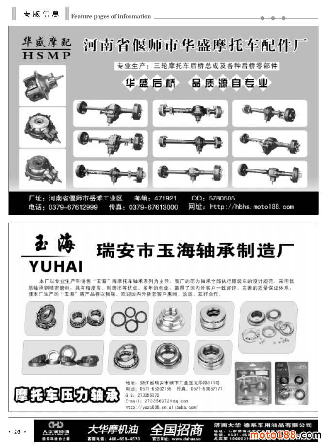 河南省偃師市華盛摩托車配件廠/瑞安市玉海軸承制造廠