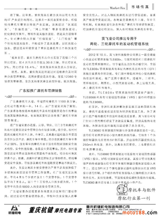 時節(jié)即將進(jìn)入盛夏了,南方的天氣也越來越熱,國內(nèi)的內(nèi)銷市場,尤其是南方地區(qū)的市場將轉(zhuǎn)成淡季。根據(jù)我們今年的出刊計劃,我們從這個月也就是六月份開始至八月份每月出一期雜志。本期雜志是在六月中旬出刊;7月雜志將在七月上旬出刊,同時在中旬還會出刊今年的第三期《摩托車與配件外貿(mào)報》即夏季版(十月出刊秋季版);八月初出刊8月版;八月底至九月初出刊9月上半期雜志,十月中下旬出刊9月下半期雜志。請大家注意我們的出刊日期,及時 到我們的發(fā)行點領(lǐng)取。我們也會在moto188網(wǎng)站的公告欄及時通知大家雜志發(fā)貨的具體時間。