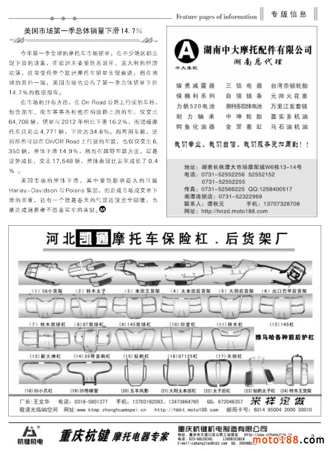 9 湖南中大摩托配件有限公司/河北凱通摩托車保險杠、后貨架廠
