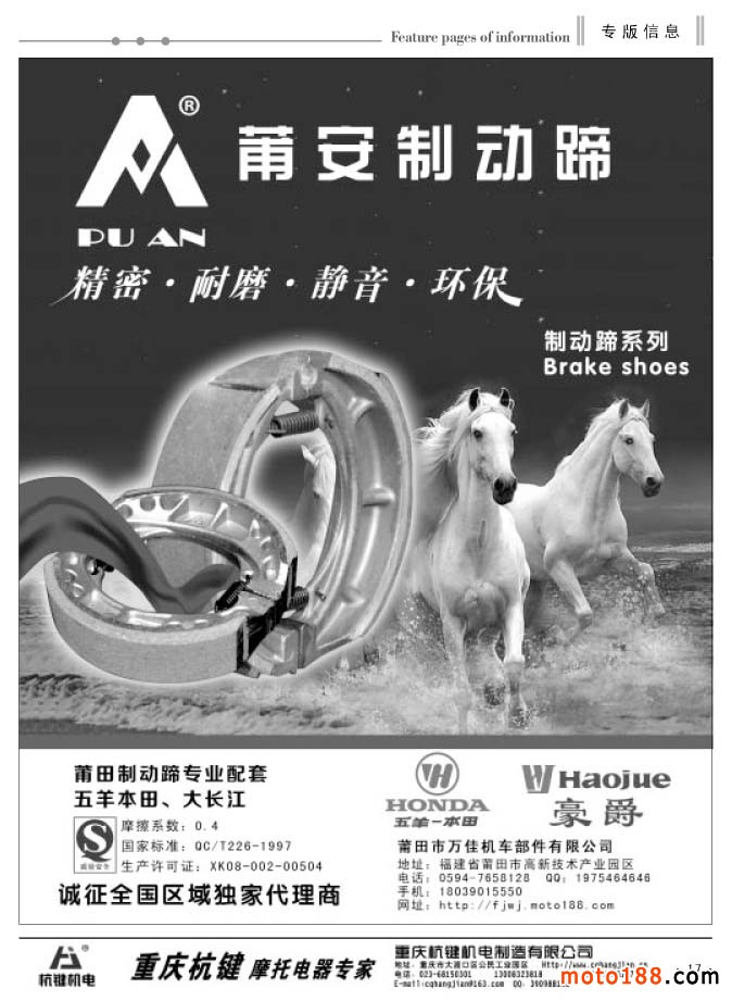 經過幾次改刊后的發行情況來看,我們這種根據市場變化靈活出刊的形式逐步被企業所認可。在發行上我們也是沒有打折扣,月出刊兩期后,黑白的內容要比過去豐富得多,可讀性也在增強。六月變單期后,我們另增加8頁黑白的文字信息內容,黑白每期為40頁。由于北方市場和南方市場淡旺季同期相反,所以在南方的淡季里,我們雜志在北方市場的發行數量將增加。不管南北市場淡旺不同,對我們來說,我們仍將一如既往地做好我們的工作。從今年6月份開始,我們工作人員將分別去福建、浙江、安徽和江西四省,走訪調研這四省的摩配市場,并將派送上萬份《外貿報》和工具書《配件生產企業大全》。同時,我們還將收集市場的最新資料,為下半年的《華東市場指南》做出書的準備工作。目前這項工作進展順利,廣告征集也在穩步進行。完成這些省份的調研工作,我們的信息采集工作也就到了收官階段。工作進展快的話,我們就會提前結束這本書的編排。在10月24日的南京全摩會上,大家就可以看到這本書了。