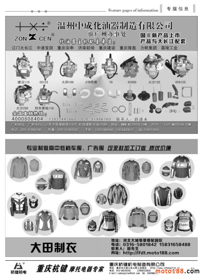 經過幾次改刊后的發行情況來看,我們這種根據市場變化靈活出刊的形式逐步被企業所認可。在發行上我們也是沒有打折扣,月出刊兩期后,黑白的內容要比過去豐富得多,可讀性也在增強。六月變單期后,我們另增加8頁黑白的文字信息內容,黑白每期為40頁。由于北方市場和南方市場淡旺季同期相反,所以在南方的淡季里,我們雜志在北方市場的發行數量將增加。不管南北市場淡旺不同,對我們來說,我們仍將一如既往地做好我們的工作。從今年6月份開始,我們工作人員將分別去福建、浙江、安徽和江西四省,走訪調研這四省的摩配市場,并將派送上萬份《外貿報》和工具書《配件生產企業大全》。同時,我們還將收集市場的最新資料,為下半年的《華東市場指南》做出書的準備工作。目前這項工作進展順利,廣告征集也在穩步進行。完成這些省份的調研工作,我們的信息采集工作也就到了收官階段。工作進展快的話,我們就會提前結束這本書的編排。在10月24日的南京全摩會上,大家就可以看到這本書了。