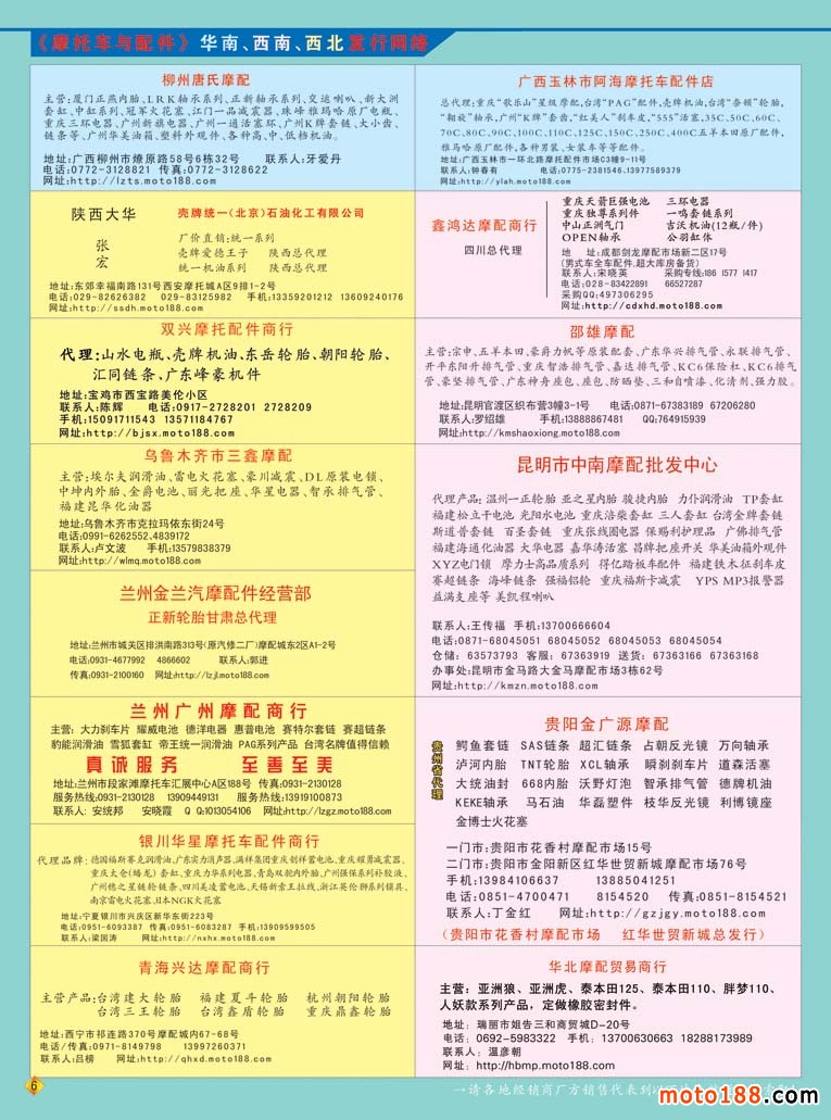本次雜志因為要參加10月17-20日在重慶國際博覽中心舉辦的第十二屆中國國際摩托車博覽會,在這個展會上我們還將《中國摩托車配件華東市場指南》帶到會上發行,因而我們在過完中秋節后,工作就十分繁忙。為了能保證及時參展,我們都在趕點,這之中還包括國慶假日,印刷廠還要放假,江蘇到重慶的在途運輸時間等。為了兌現我們出版發行的承諾,我們也只有努力工作。