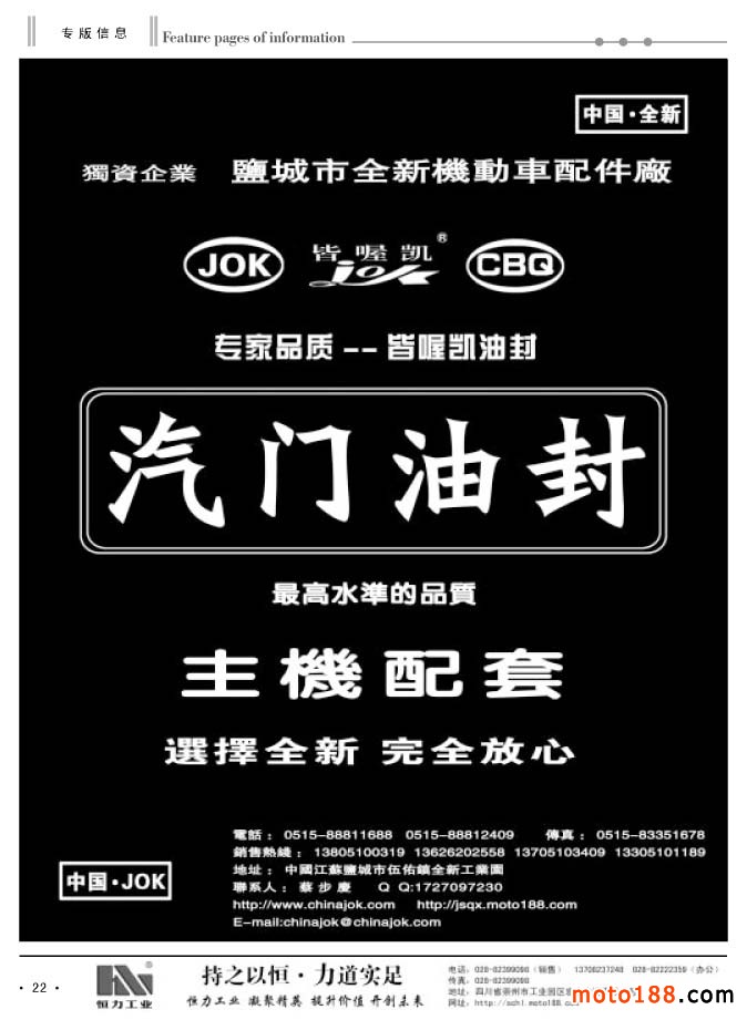 本次雜志因為要參加10月17-20日在重慶國際博覽中心舉辦的第十二屆中國國際摩托車博覽會,在這個展會上我們還將《中國摩托車配件華東市場指南》帶到會上發行,因而我們在過完中秋節后,工作就十分繁忙。為了能保證及時參展,我們都在趕點,這之中還包括國慶假日,印刷廠還要放假,江蘇到重慶的在途運輸時間等。為了兌現我們出版發行的承諾,我們也只有努力工作。