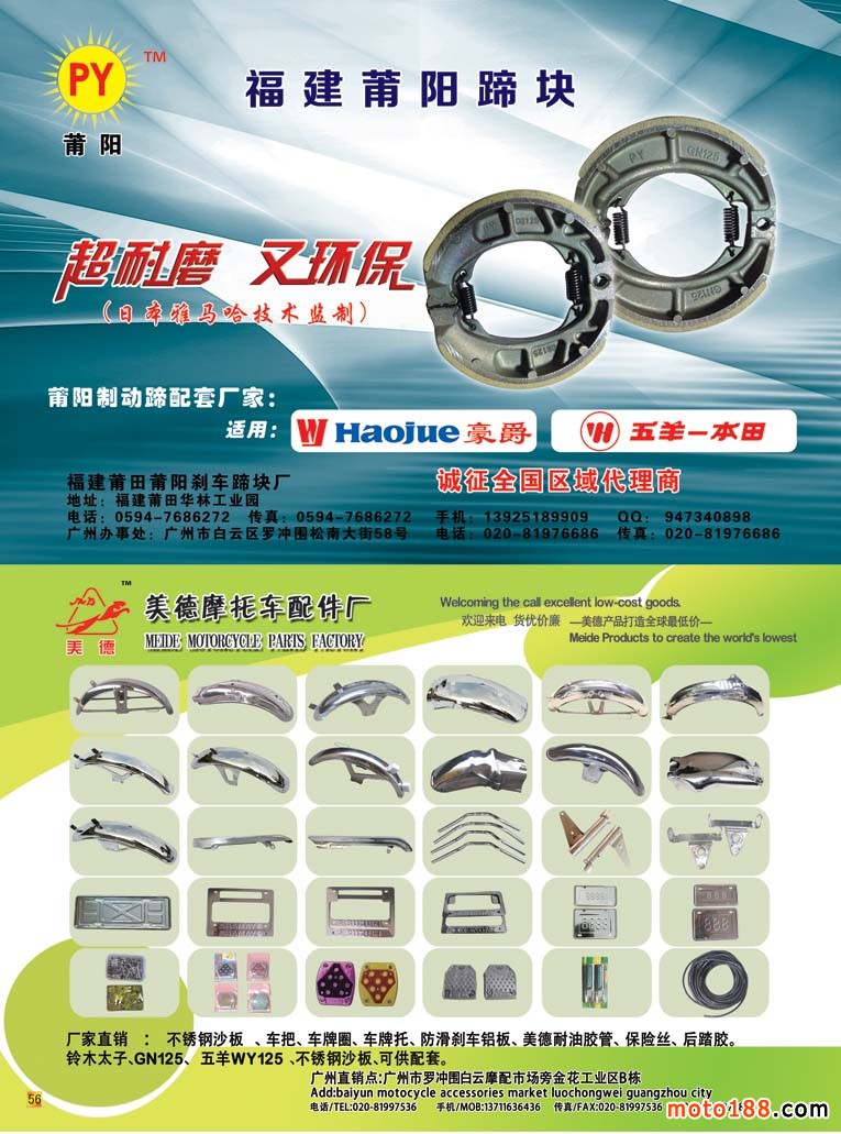 后彩56 福建莆田莆陽剎車蹄塊廠/美德摩托車配件廠