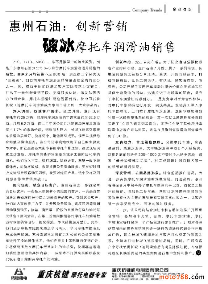 5 惠州石油:創新營銷破冰摩托車潤滑油銷售
