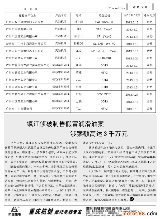11 鎮江偵破制售假冒潤滑油案 涉案額高達3千萬元