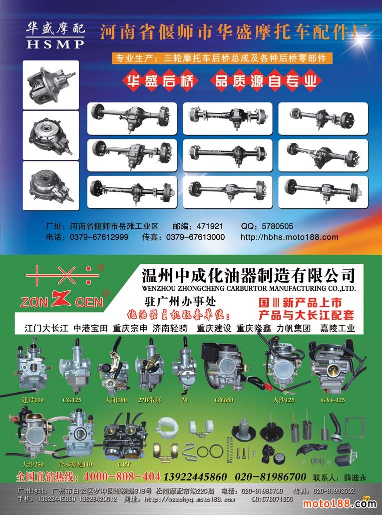 內119 河南省偃師市華盛摩托車配件廠/溫州中成化油器制造有限公司