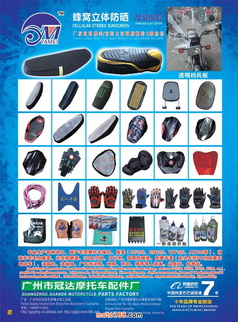 今年下半年我們將根據全摩會的地址變動而變動,下半年我們出版兩本書籍——《華南(廣東、海南)市場指南》、第十二次《中國摩托車配件生產業大全》升級版。廣州是中國摩托車配件的出口窗口,《華南版》廣州部分內容繼續用中英文雙語出版。