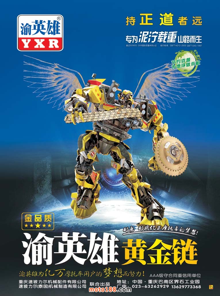 新的變革之后的《摩托車與配件》已經(jīng)出了四個(gè)配件子產(chǎn)業(yè)的專題,通過這種形式的變革,我們對(duì)摩托車配件的微觀行業(yè)也有了越來越深入的了解。每一個(gè)子行業(yè)也都有做得不錯(cuò)的龍頭企業(yè),他們?cè)谶@個(gè)子行業(yè)里通過橫向地拓展,觸角伸得也較廣泛。比如這一期是鏈條專題,其實(shí)不光摩托車用,電動(dòng)車、汽車、工業(yè)機(jī)械....只要需要傳動(dòng)的都有鏈條的身影。因而許多廠的產(chǎn)品也涉及了多行業(yè),但是我們僅選擇與我們產(chǎn)業(yè)有關(guān)的產(chǎn)品做一般的技術(shù)報(bào)道;前沿行業(yè)作泛泛報(bào)道;市場(chǎng)運(yùn)用方面則是盡可能以廣角報(bào)道。以前一些企業(yè)也在我們雜志上做過宣傳,因?yàn)槲覀冋J(rèn)識(shí)水平淺,不容易突出重點(diǎn)品牌企業(yè),因而在宣傳服務(wù)上也流于常規(guī)。但是通過這期專題后,我們了解到,像東華、恒久、順峰、雙獅、征和等都是這個(gè)行業(yè)的龍頭企業(yè),而且這些龍頭企業(yè)后勁十足。他們不光在擴(kuò)大產(chǎn)能生產(chǎn);更是投入了相當(dāng)?shù)木υ诟憧蒲?;抑或引進(jìn)國(guó)外的先進(jìn)技術(shù),不光在做大更是在做強(qiáng),假以時(shí)日,他們也會(huì)在國(guó)際市場(chǎng)上占有一席之地。我們對(duì)這些企業(yè)充滿敬意,他們是民族工業(yè)的脊梁。雖然納稅沒有房地產(chǎn)企業(yè)多,也沒有金融和地產(chǎn)業(yè)的風(fēng)光,但他們沒有固步自封,也不滿足現(xiàn)狀,帶著創(chuàng)新和發(fā)展的精神趕德超日超美,縮短與國(guó)際水平的差距,也正是因?yàn)橛性S多像這樣的實(shí)體產(chǎn)業(yè),中國(guó)制造才能真正的做強(qiáng)。那些只制造虛的龐大GDP的、靠吸吮實(shí)體產(chǎn)業(yè)汁水而滋潤(rùn)的和靠壟斷而光鮮的行業(yè),在他們面前是多么的不堪。