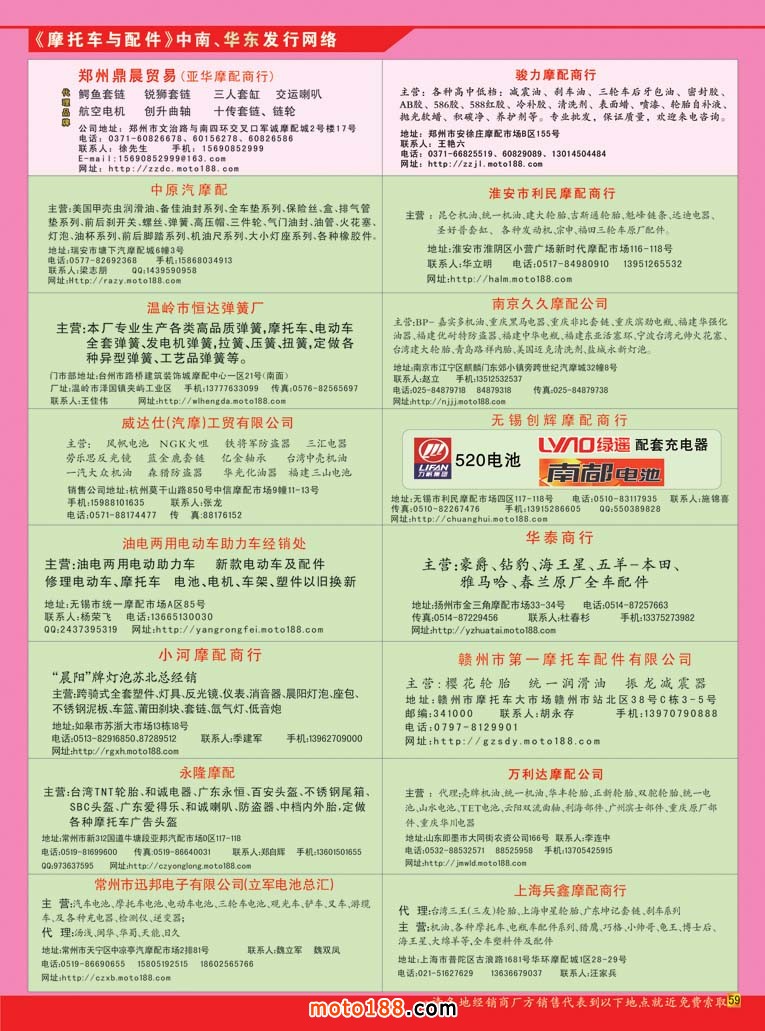 還有兩個月的時間,行業盛會就要在西安拉開帷幕。這兩個月也是我們忙碌的季節,我們要完成《西北市場指南》的編排和制作,這是原《三北市場指南》的升級版,將以前的東北、西北、華北三個地區的市場,獨立出來。因為目前西北摩托車及配件市場發展已今非昔比,西北五省,陜、甘、寧、青、新,每一個省的市場都有較大的變化,他們不是像華東地區越變越小,而是越變越大。市場的吞吐量、品種以及市場的規模和形象都在改變。大家在這次全摩會之后,不妨拿著我們的《西北指南》循著指南的方向到這些市場走一走,就會有更深的感知,甚至能給你帶來不少的商機。另外,我們還根據市場的新變化,將市場里的三輪車和電動車經銷企業也收錄在《西北指南》里,和我們雜志新的定位一樣,將相關的行業一網打盡。需要開拓西北市場的企業,在這本《西北市場指南》上做宣傳展示自己企業形象,一定會對得起你的投入。目前這本書也進入了編排倒計時,三月底就截稿印刷,需要宣傳的企業請盡快與我們總部及分布在各地工作站的人員聯系。