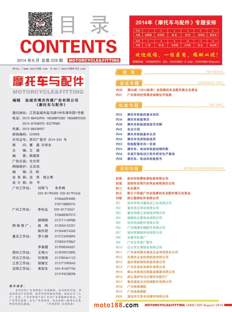 炎熱的夏季終將過去,收獲的秋天在等待我們,從下一期雜志開始,我們就要為廣州全摩會做準備工作了,在這個會上,我們會向全體參會人員奉獻兩本數(shù)據(jù)庫類書籍,一本是生產(chǎn)廠家的《摩托車配件生產(chǎn)企業(yè)大全》,在這一個升級版中,我們新增加十幾個大的摩托車整車生產(chǎn)廠家資料,同時增加二十家電動車生產(chǎn)廠家及十幾家三輪摩托車和三輪電動車廠家,努力根據(jù)市場需要豐富書的內(nèi)容。還有一本就是第二次升級的《華南市場指南》收集廣東和海南兩省的經(jīng)銷商資料匯總,其中,廣東省的廣州市的市場用中英文出版,目前各項工作正緊張有序的進行,歡迎大家在全摩會期間來廣州保利展館分享我們的勞動果實。春種一粒粟,秋收萬顆籽。