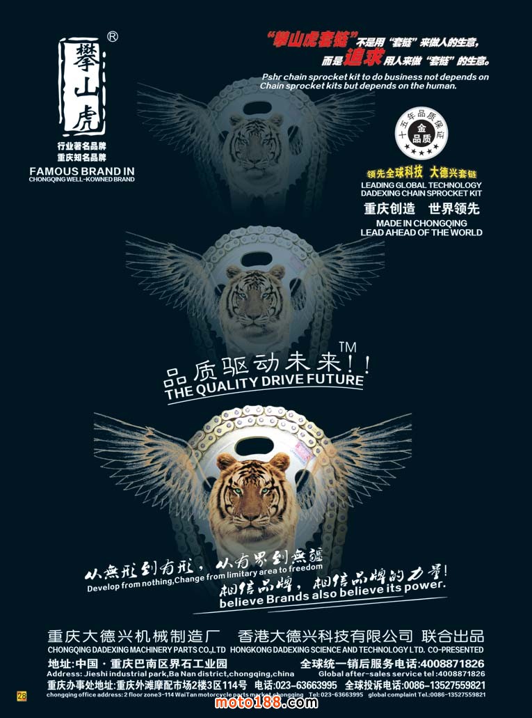 炎熱的夏季終將過去,收獲的秋天在等待我們,從下一期雜志開始,我們就要為廣州全摩會做準備工作了,在這個會上,我們會向全體參會人員奉獻兩本數據庫類書籍,一本是生產廠家的《摩托車配件生產企業大全》,在這一個升級版中,我們新增加十幾個大的摩托車整車生產廠家資料,同時增加二十家電動車生產廠家及十幾家三輪摩托車和三輪電動車廠家,努力根據市場需要豐富書的內容。還有一本就是第二次升級的《華南市場指南》收集廣東和海南兩省的經銷商資料匯總,其中,廣東省的廣州市的市場用中英文出版,目前各項工作正緊張有序的進行,歡迎大家在全摩會期間來廣州保利展館分享我們的勞動果實。春種一粒粟,秋收萬顆籽。