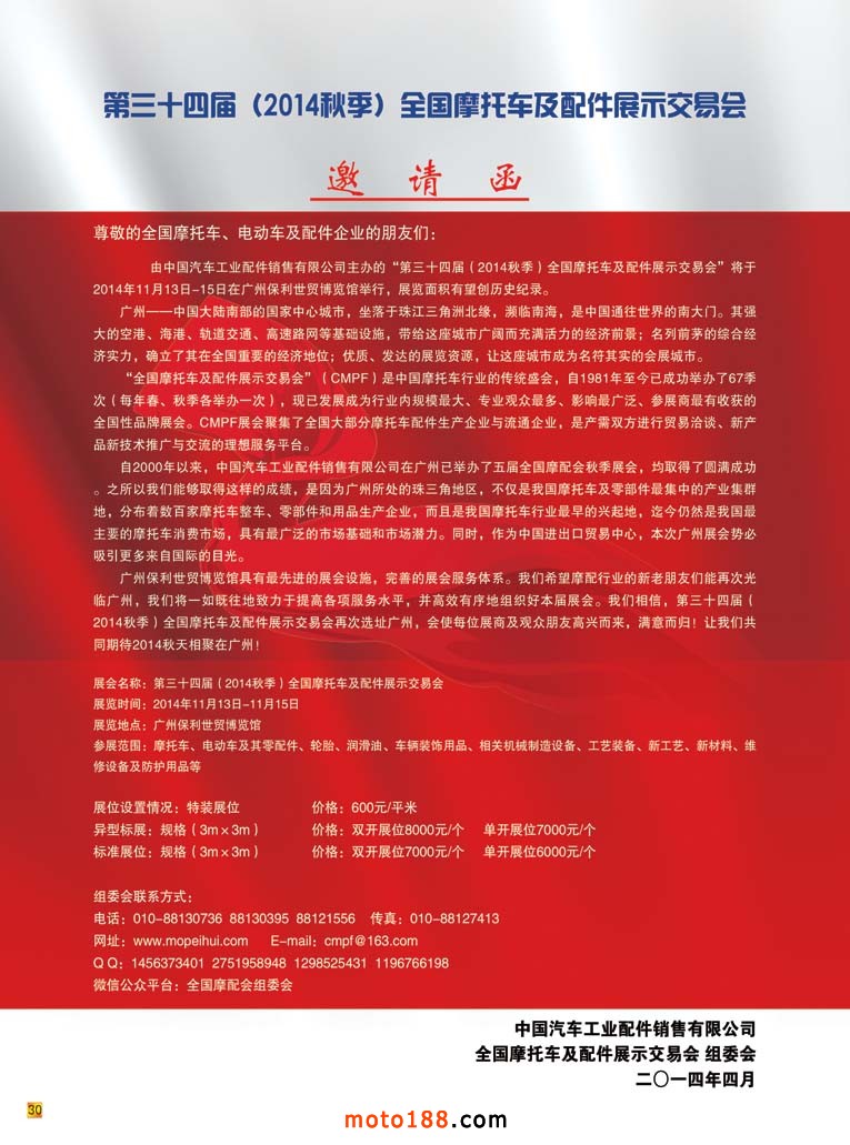 內30 第34屆(2014秋季)全國摩托車及配件展示交易會