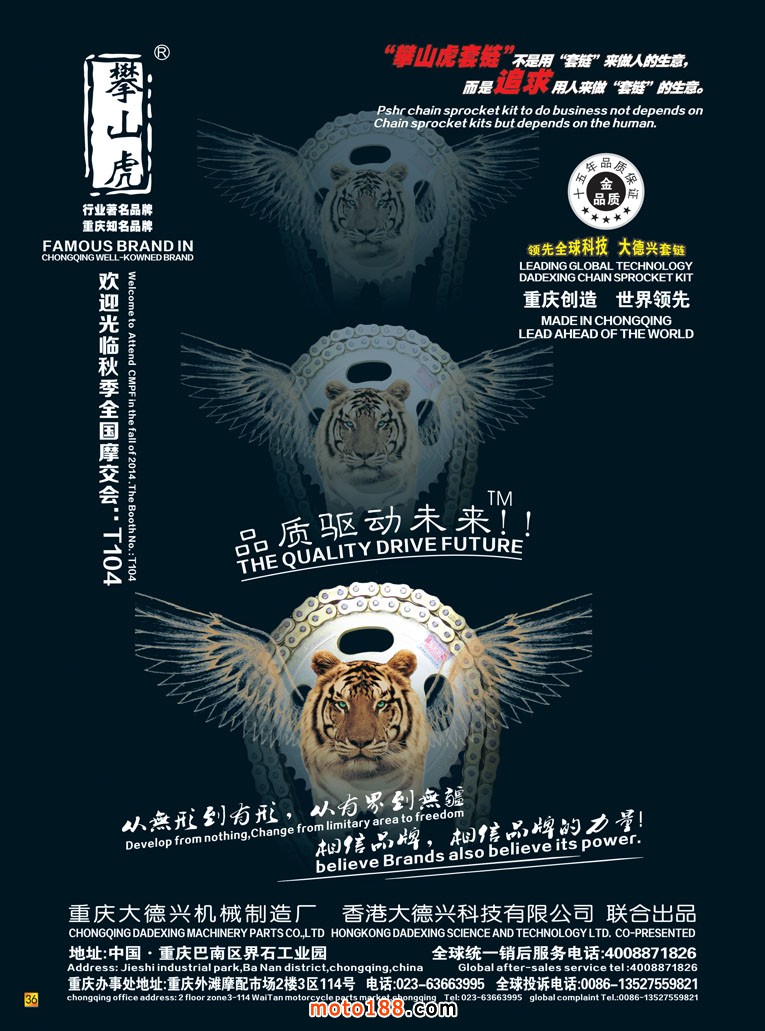 ”全國摩托車及配件展示會“(CMPF)是中國摩托車行業(yè)的傳統(tǒng)盛會,自1981年至今已成功舉辦了67季次(每年春、秋季各舉辦一次),現(xiàn)已發(fā)展成為行業(yè)內(nèi)規(guī)模最大、專業(yè)觀眾最多、影響最廣泛、參展商最有收獲的全國性品牌展會。CMPF展會聚集了全國大部分摩托車配件生產(chǎn)企業(yè)與流通企業(yè),是產(chǎn)需雙方進(jìn)行貿(mào)易洽談、新產(chǎn)品技術(shù)推廣與交流的理想服務(wù)平臺。