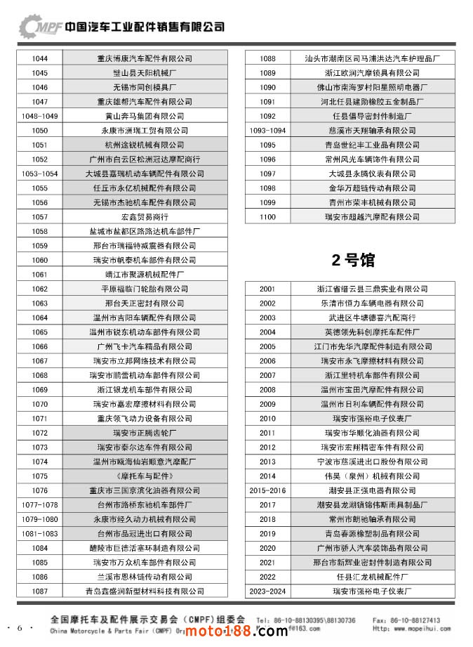 ”全國摩托車及配件展示會(huì)“(CMPF)是中國摩托車行業(yè)的傳統(tǒng)盛會(huì),自1981年至今已成功舉辦了67季次(每年春、秋季各舉辦一次),現(xiàn)已發(fā)展成為行業(yè)內(nèi)規(guī)模最大、專業(yè)觀眾最多、影響最廣泛、參展商最有收獲的全國性品牌展會(huì)。CMPF展會(huì)聚集了全國大部分摩托車配件生產(chǎn)企業(yè)與流通企業(yè),是產(chǎn)需雙方進(jìn)行貿(mào)易洽談、新產(chǎn)品技術(shù)推廣與交流的理想服務(wù)平臺(tái)。