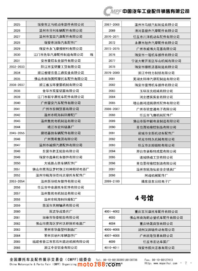 ”全國摩托車及配件展示會“(CMPF)是中國摩托車行業的傳統盛會,自1981年至今已成功舉辦了67季次(每年春、秋季各舉辦一次),現已發展成為行業內規模最大、專業觀眾最多、影響最廣泛、參展商最有收獲的全國性品牌展會。CMPF展會聚集了全國大部分摩托車配件生產企業與流通企業,是產需雙方進行貿易洽談、新產品技術推廣與交流的理想服務平臺。
