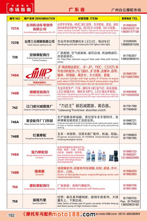 各摩配市場(chǎng)詳細(xì)資料請(qǐng)注冊(cè)我們的VIP會(huì)員咨詢 電話:0515-88436994 QQ:309362965、842467029、1051652573