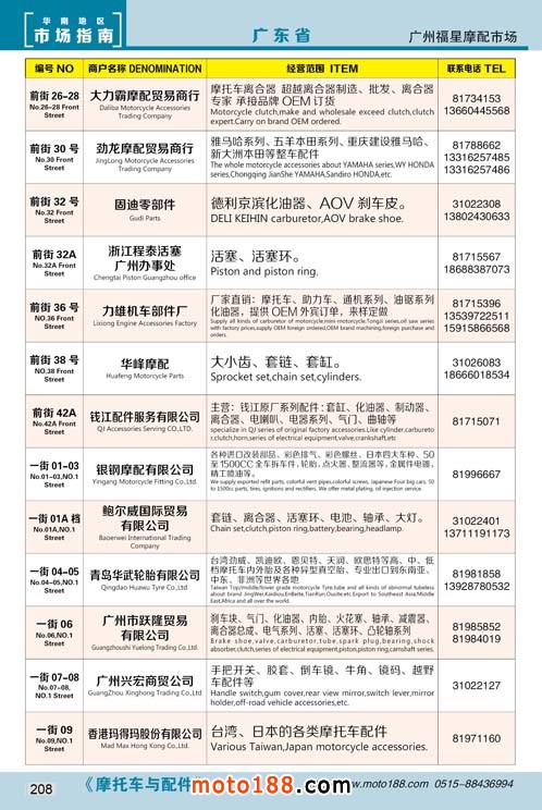 各摩配市場(chǎng)詳細(xì)資料請(qǐng)注冊(cè)我們的VIP會(huì)員咨詢 電話:0515-88436994 QQ:309362965、842467029、1051652573