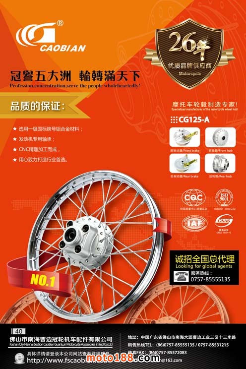 內40:佛山市南海曹邊冠輪機車配件有限公司