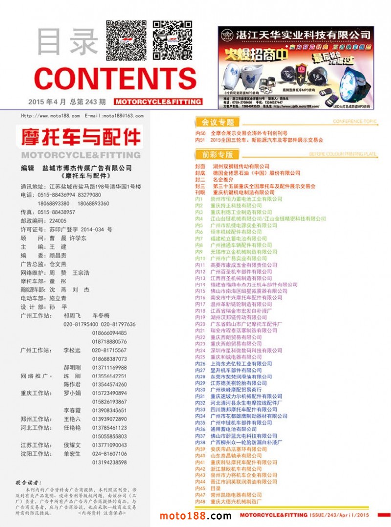 今年第四期雜志雖然在全國市場都有發行,一些不在市場的地區商戶除了通過www.moto188.com網站閱讀,也可到我們展位直接領取。由于本期雜志需要宣傳的企業較多,原來的摩托車及電動車行業的資訊的內容,順延到下一期發布。