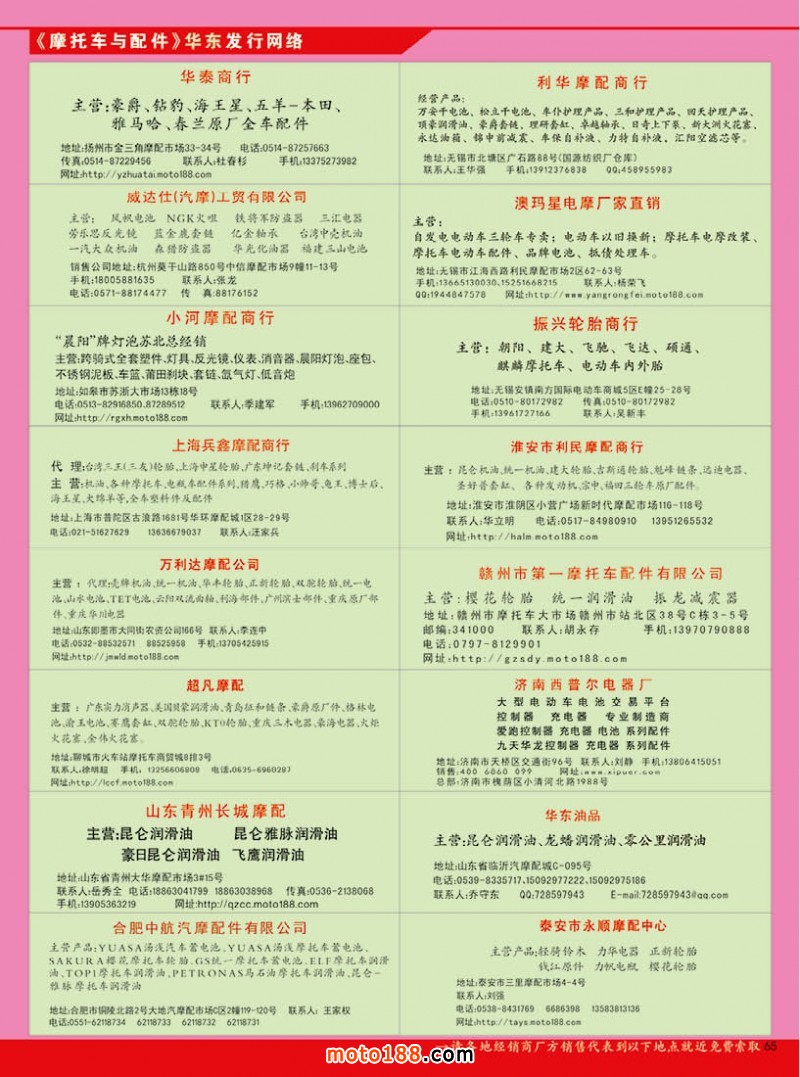今年第四期雜志雖然在全國市場都有發行,一些不在市場的地區商戶除了通過www.moto188.com網站閱讀,也可到我們展位直接領取。由于本期雜志需要宣傳的企業較多,原來的摩托車及電動車行業的資訊的內容,順延到下一期發布。