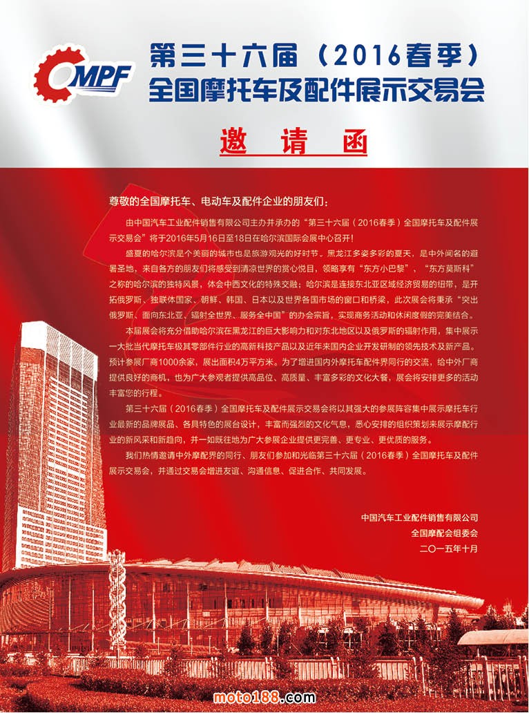 內38 第36屆(2016春季)全國摩托車及配件展示交易會邀請函