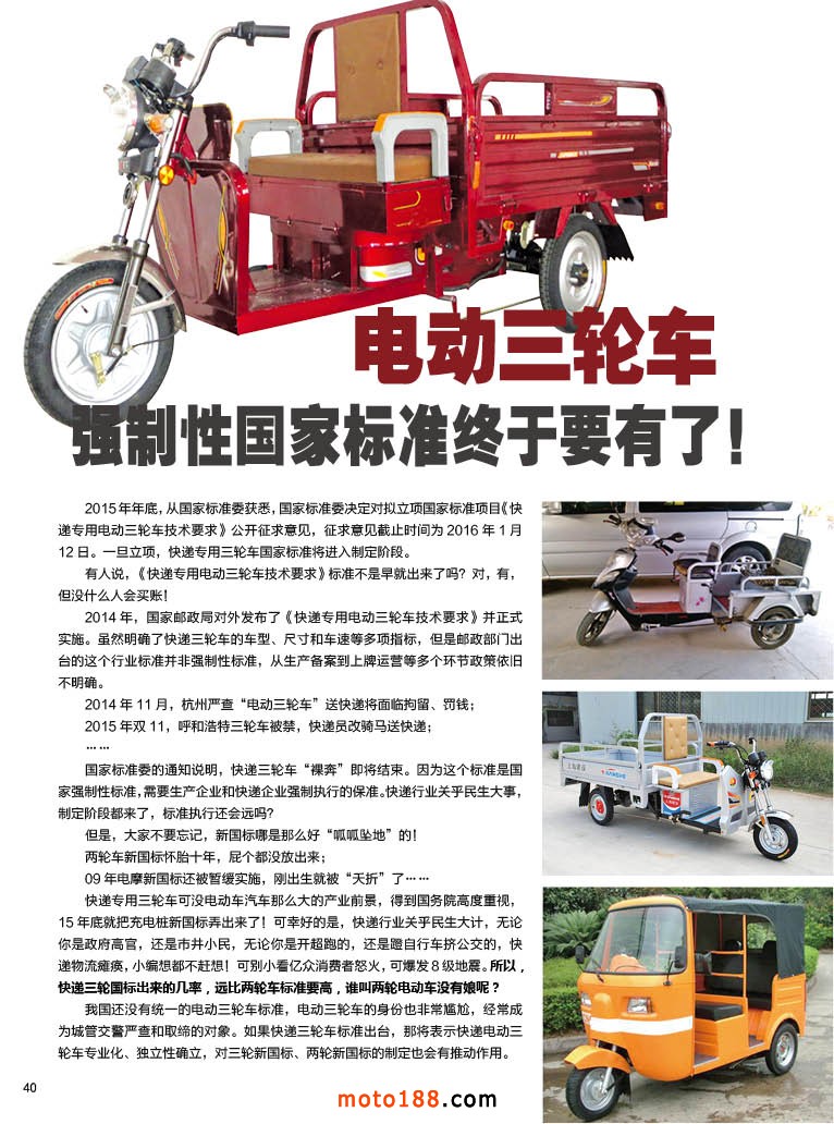 內40 電動三輪車強制性國家標準終于要有了!