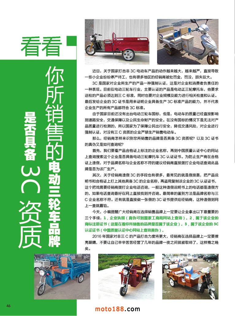 內46 看看你所銷售的電動三輪車品牌是否具備3C資質