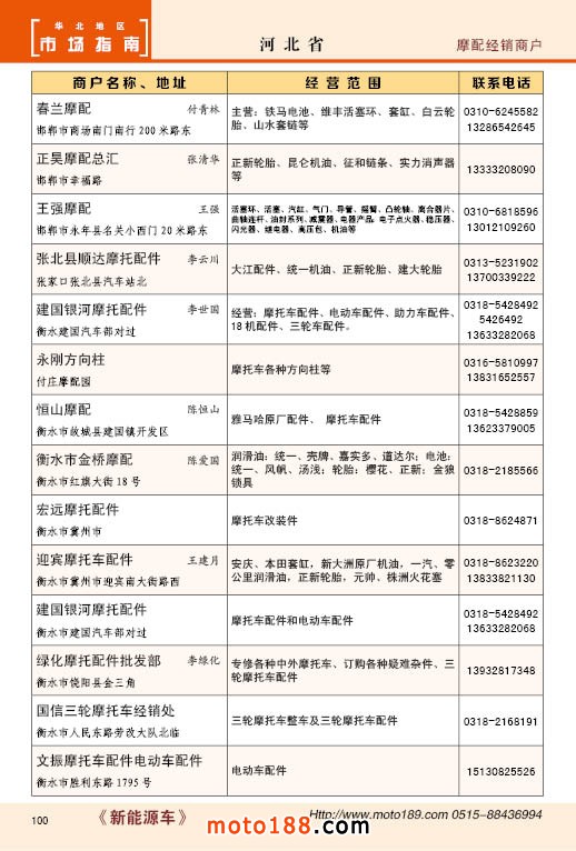 內(nèi)100 河北省摩托車配件經(jīng)銷商戶