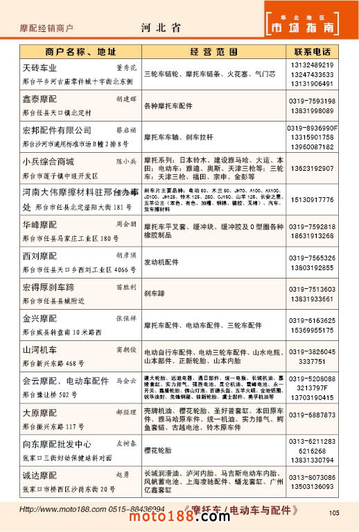 內105 河北省摩托車配件經銷商戶