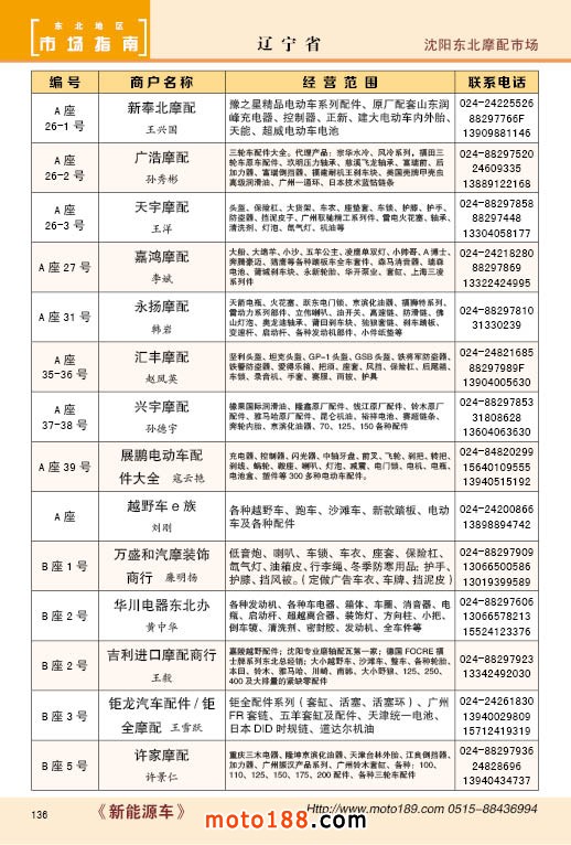 中國摩配市場從上世紀九十年代開始經過高速度的發展,正逐步減速,摩托車行業也漸呈式微,與之緊密相關的后市場的配件與維修也呈逐步下滑之勢,取代摩托車的在發達地區是汽車,欠發達地區是電動兩輪、電動三輪,甚至電動四輪車,隨著經濟的發展,出行的多樣化,也給了消費者多重的選擇。目前現有的摩托車及配件市場,也不再是以純摩托車為主體,有的市場電動車取代了摩托車,有的商店也是混合經營,這些變化在《市場指南》里面都有所反應。這次《北方指南》一些小市場不再單列,并入到相應的省份中去;以前去市場的公交線路,書中也不再列入,因為現在的地圖導航功能十分強大,既新又準。