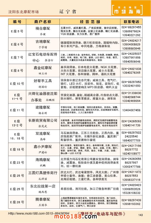 中國摩配市場從上世紀九十年代開始經(jīng)過高速度的發(fā)展,正逐步減速,摩托車行業(yè)也漸呈式微,與之緊密相關的后市場的配件與維修也呈逐步下滑之勢,取代摩托車的在發(fā)達地區(qū)是汽車,欠發(fā)達地區(qū)是電動兩輪、電動三輪,甚至電動四輪車,隨著經(jīng)濟的發(fā)展,出行的多樣化,也給了消費者多重的選擇。目前現(xiàn)有的摩托車及配件市場,也不再是以純摩托車為主體,有的市場電動車取代了摩托車,有的商店也是混合經(jīng)營,這些變化在《市場指南》里面都有所反應。這次《北方指南》一些小市場不再單列,并入到相應的省份中去;以前去市場的公交線路,書中也不再列入,因為現(xiàn)在的地圖導航功能十分強大,既新又準。