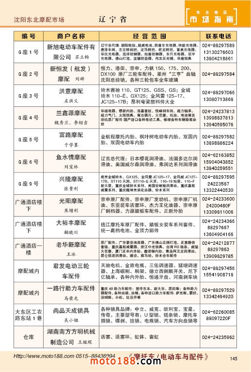 中國摩配市場從上世紀九十年代開始經過高速度的發展,正逐步減速,摩托車行業也漸呈式微,與之緊密相關的后市場的配件與維修也呈逐步下滑之勢,取代摩托車的在發達地區是汽車,欠發達地區是電動兩輪、電動三輪,甚至電動四輪車,隨著經濟的發展,出行的多樣化,也給了消費者多重的選擇。目前現有的摩托車及配件市場,也不再是以純摩托車為主體,有的市場電動車取代了摩托車,有的商店也是混合經營,這些變化在《市場指南》里面都有所反應。這次《北方指南》一些小市場不再單列,并入到相應的省份中去;以前去市場的公交線路,書中也不再列入,因為現在的地圖導航功能十分強大,既新又準。