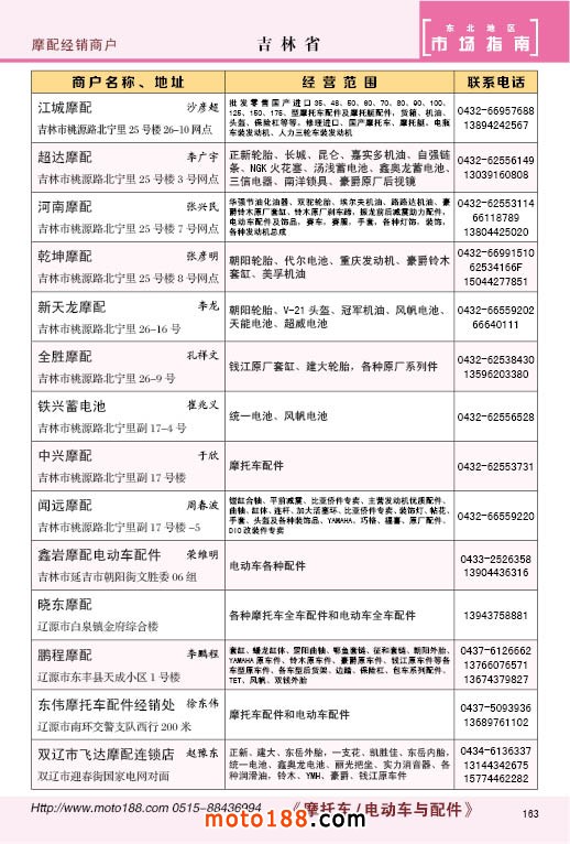 中國(guó)摩配市場(chǎng)從上世紀(jì)九十年代開始經(jīng)過(guò)高速度的發(fā)展,正逐步減速,摩托車行業(yè)也漸呈式微,與之緊密相關(guān)的后市場(chǎng)的配件與維修也呈逐步下滑之勢(shì),取代摩托車的在發(fā)達(dá)地區(qū)是汽車,欠發(fā)達(dá)地區(qū)是電動(dòng)兩輪、電動(dòng)三輪,甚至電動(dòng)四輪車,隨著經(jīng)濟(jì)的發(fā)展,出行的多樣化,也給了消費(fèi)者多重的選擇。目前現(xiàn)有的摩托車及配件市場(chǎng),也不再是以純摩托車為主體,有的市場(chǎng)電動(dòng)車取代了摩托車,有的商店也是混合經(jīng)營(yíng),這些變化在《市場(chǎng)指南》里面都有所反應(yīng)。這次《北方指南》一些小市場(chǎng)不再單列,并入到相應(yīng)的省份中去;以前去市場(chǎng)的公交線路,書中也不再列入,因?yàn)楝F(xiàn)在的地圖導(dǎo)航功能十分強(qiáng)大,既新又準(zhǔn)。