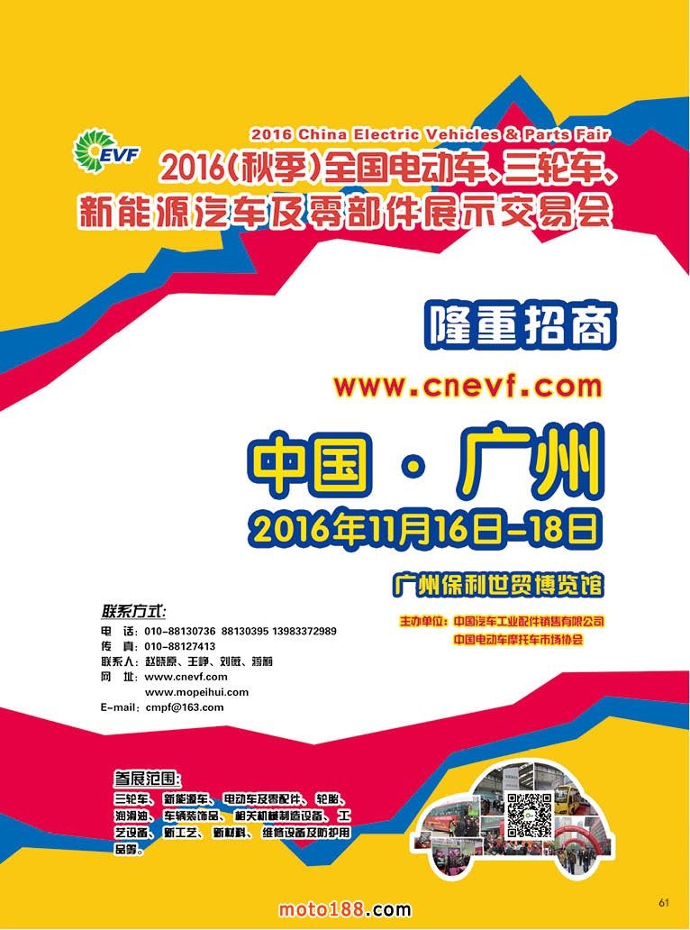 內61 2016(秋季)全國電動車、三輪車、新能源汽車及零部件展示交易會