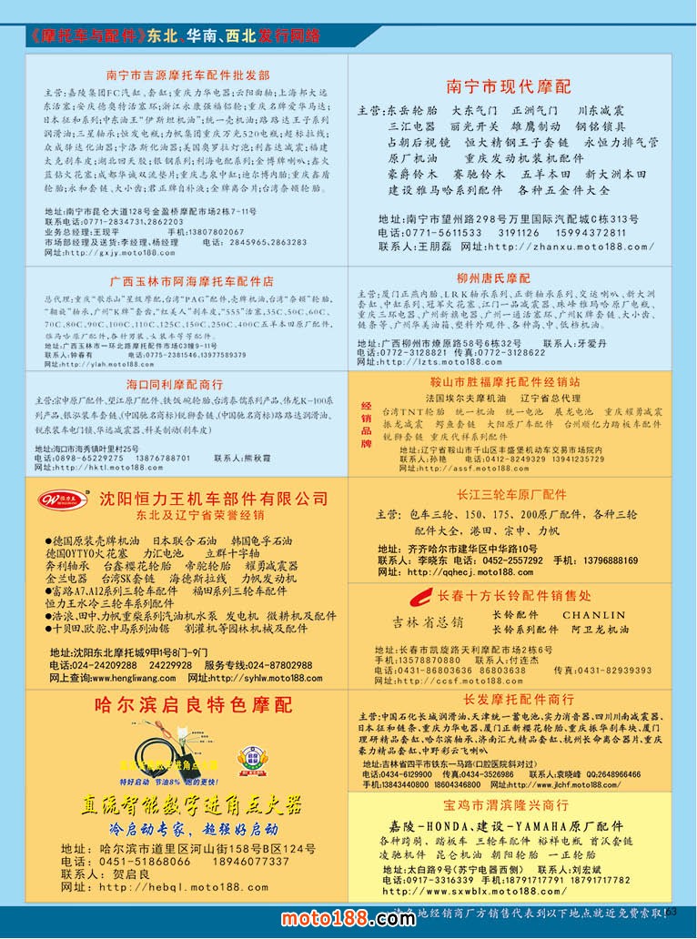 北方市場經過多年的調整,市場變化較大,在每個省會城市都有一個相當規模的市場,從數量上來看,這些企業的關門或轉行的并不太多,但普遍反映今年市場經營比較困難,需求不振,利潤低薄;不少店是夫妻老婆檔,年青人對這個行業似乎失去了興趣和耐性;因為國內整車銷售的進一步萎縮,后市場配件部分也自然供過于求。目前在地區級市場以送貨和小批量發貨為主,門市商店普遍比較冷清,現在上門購配件已經很少了,摩配中小批發商一業為主,多種經營;純經營摩配的企業在逐步減少,電動車、三輪車、通用小型發電機等配件的銷售比重在增加。